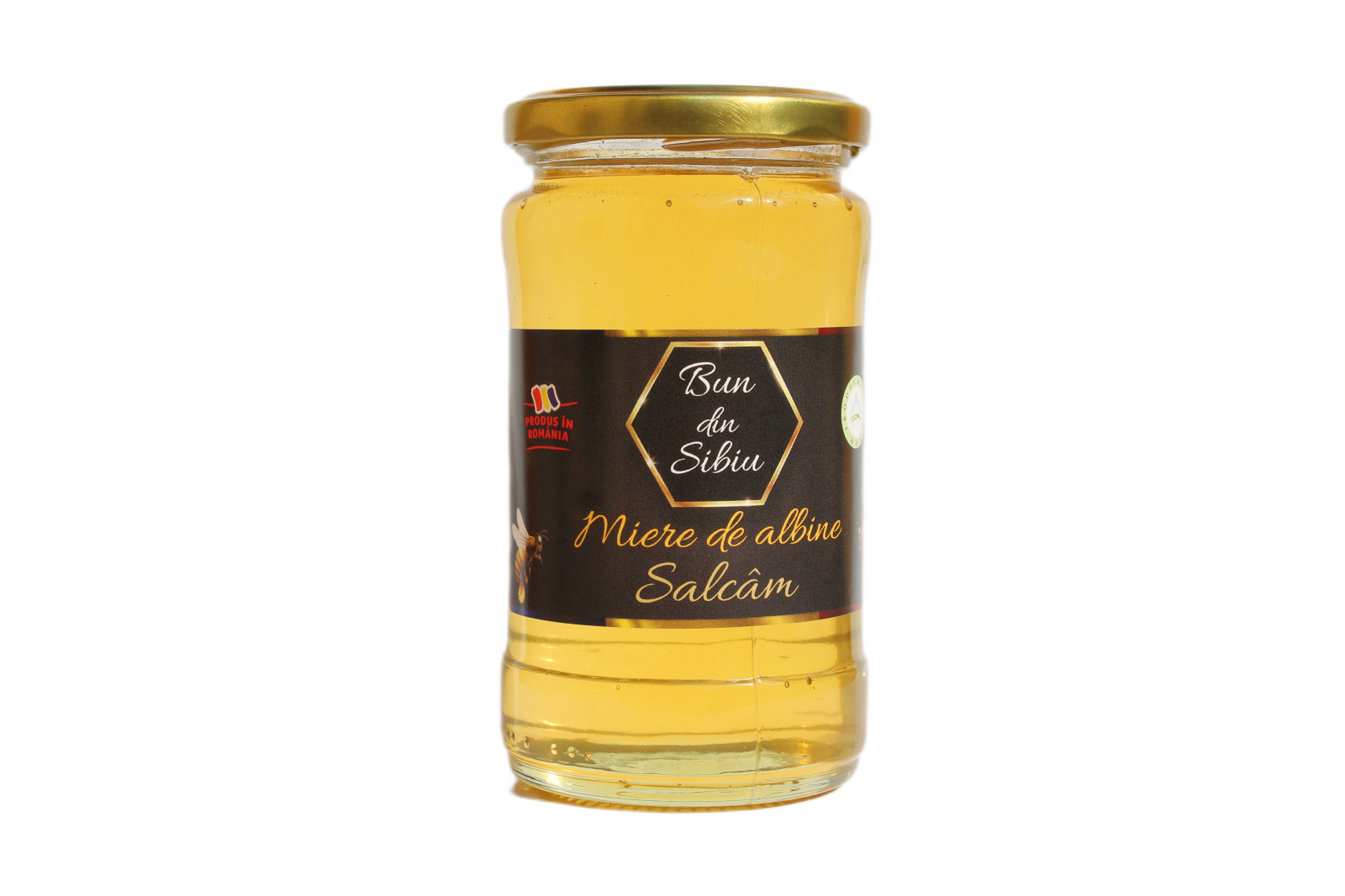 Miere naturală de salcâm, obținută din nectarul florilor de salcâm din zona Sibiului.